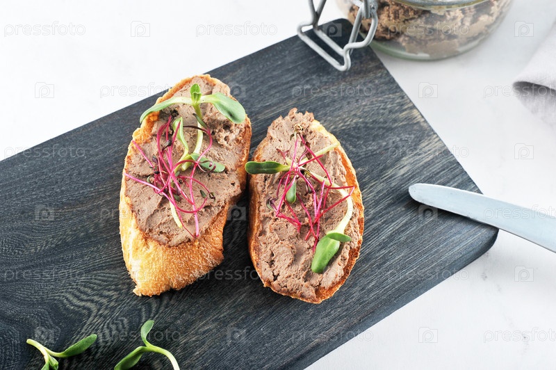 Два поджаренных сэндвича из тостов с паштетом и зеленью