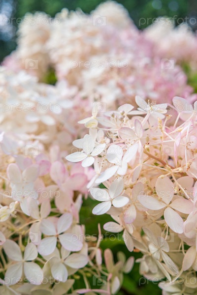 Нежные кремово-розовые цветки гортензии метельчатой «Фантом»