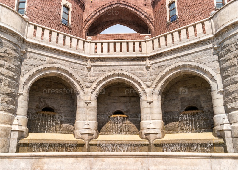 Вид на фонтаны на лестнице террасы в Хельсингборге, Швеция