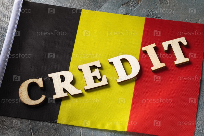 Текст из деревянных букв и бельгийского флага на абстрактном фоне, концепция займа из Бельгии