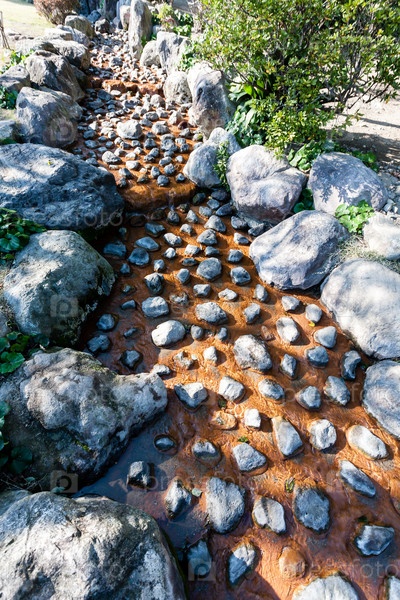 Горячий источник (Дзигоку), разноцветный вулканический ручей с камнями в районе Каннава в Беппу, Япония