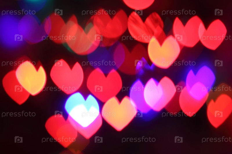 Боке фон красочных сердец ночью