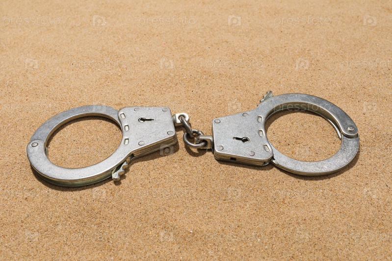 Закрытые наручники на песке, крупный план