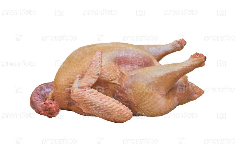 Туша сырой индейки на белом фоне