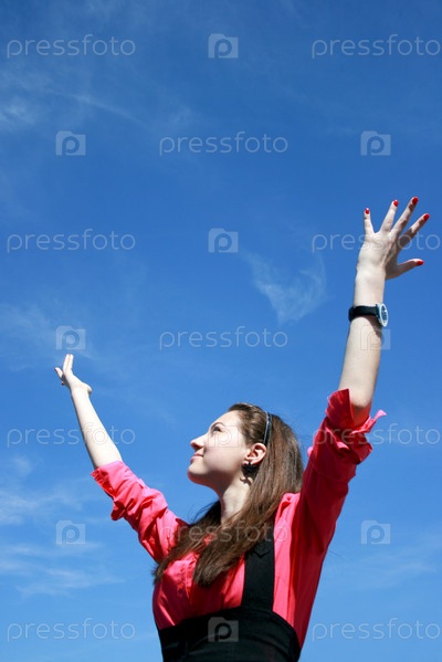 Молодая предпринимательница с поднятыми руками