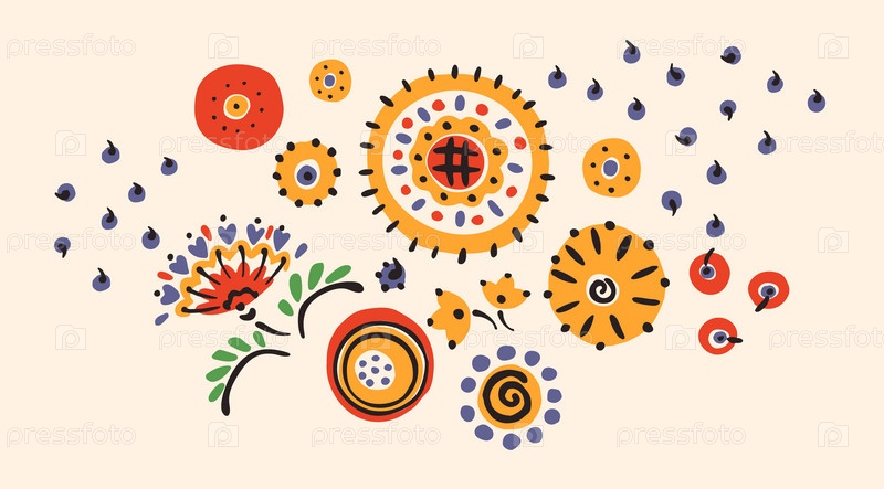 Набор этнических элементов. Бордюр представляет собой полосу с цветами, листьями, ветками, вензелями. Народная вышивка. Славянский, украинский, русский мотив. Хохлома, матрешка, дымковская игрушка. Мексиканский, индийский, цыганский ковер. Вязаное кружево
