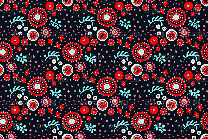Бесшовный узор с фантазийными цветами, этнический вращающийся повторяющийся дизайн ткани и плитки, натуральные обои, иллюстрация завитка цветочного декора. Пейсли печать рисованной элементы.Украинский узор