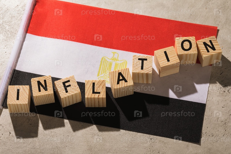 Египетский флаг и деревянные кубики с текстом, концепция на тему инфляции в Египте