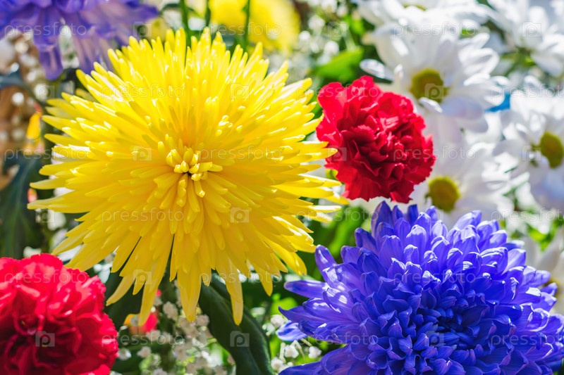 Много ярких и красивых цветов, собранных в большой букет