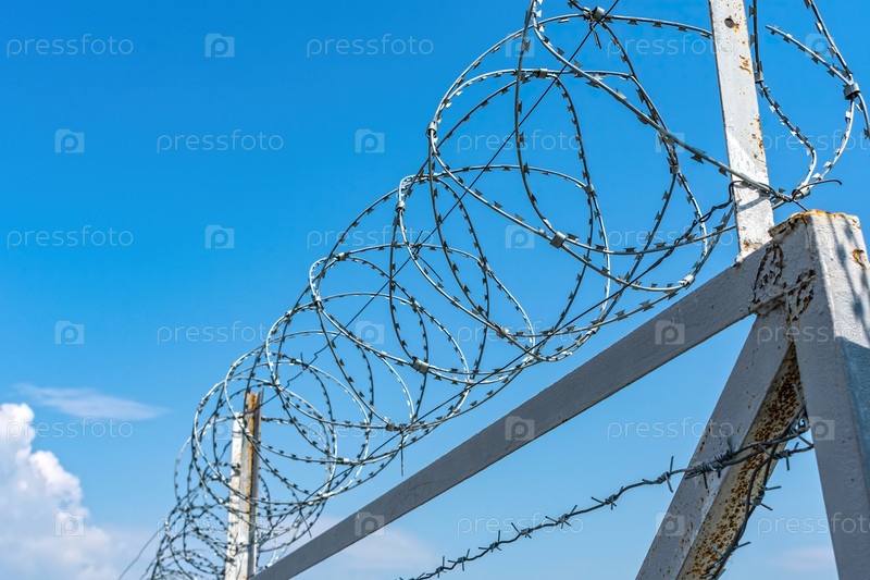 Ограждение из колючей проволоки для защиты и охраны запретной зоны или зоны аэропорта или тюрьмы