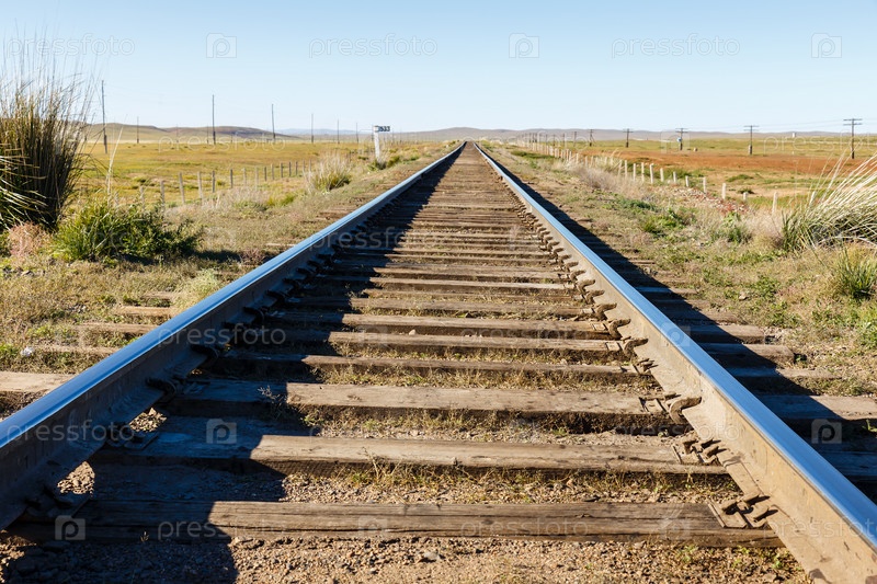 Трансмонгольская железная дорога, однопутная железная дорога в степи,