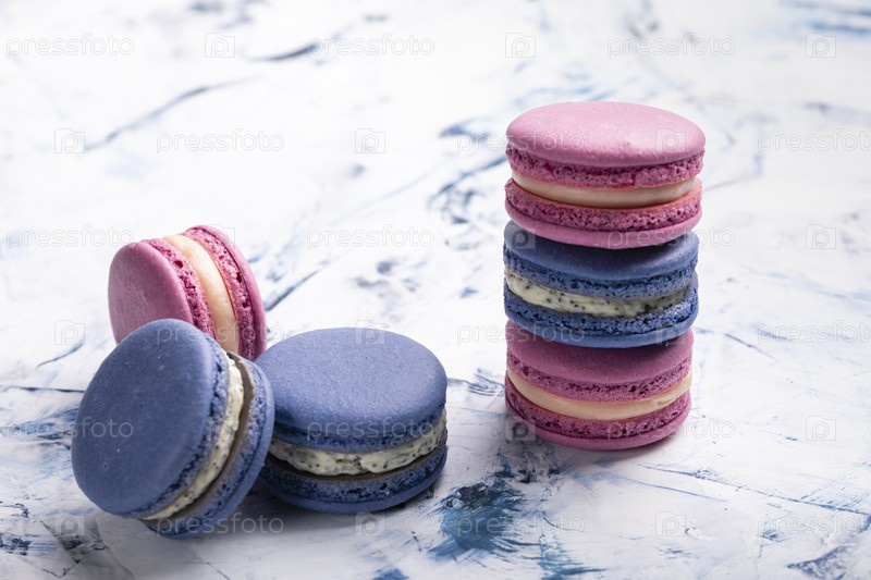 Стопка красочных миндальных печений крупным планом