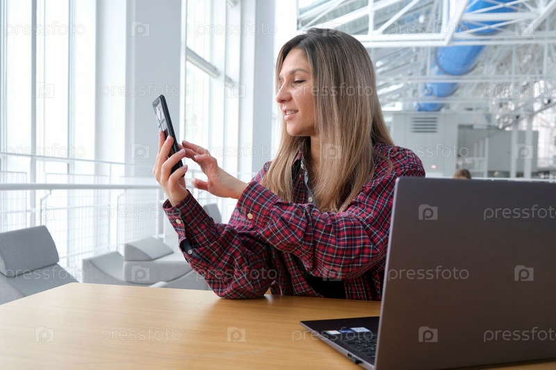 Портрет молодой красивой женщины-фрилансера, работающей с ноутбуком. Концепция фриланса и удаленной работы. Рабочие процессы заставляют гибрид работать, работать. Цифровая женщина и социальные сети