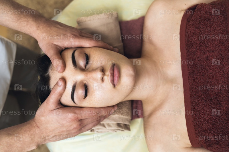 Хиропрактик делает расслабляющий массаж лицевых мышц женщине