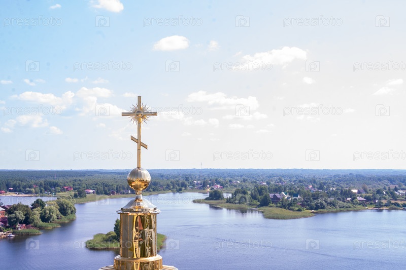 Мужской православный монастырь Нило-Столобенская пустыня, Россия, Тверская область, город Осташков. Вид с колокольни на озеро Селигер. Мужский православный монастырь Нило-Столобенская пустыня, Россия, Тверская область, the city of Ostashkov