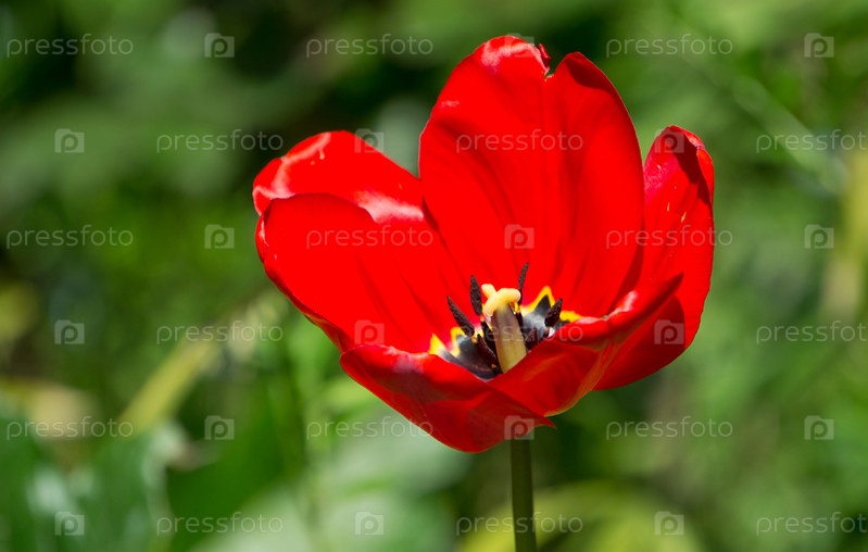 Красный тюльпан на размытом зеленом фоне