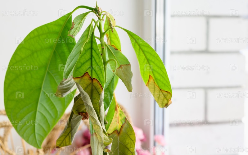 Сухой больной лист комнатного растения крупным планом