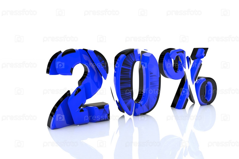 3D-цифры 20 процентов из пластика, собранного у конструктора на белом фоне. иллюстрация 3d, символизирующая скидки, рост или продажи в финансовой среде