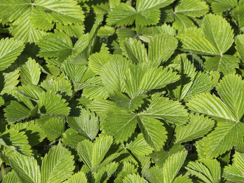 Фон с зелеными листьями клубники. Макросъемка листьев клубники на фоне зеленой текстуры. Заросли зеленых сочных листьев садовой клубники в солнечном саду. без ягод