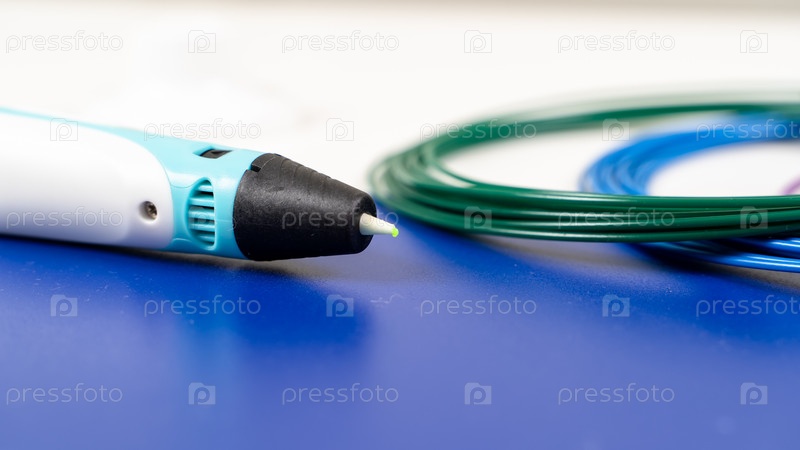 Вид сверху на создание детских рук с помощью 3D-ручки.Обучение и развлечения дома