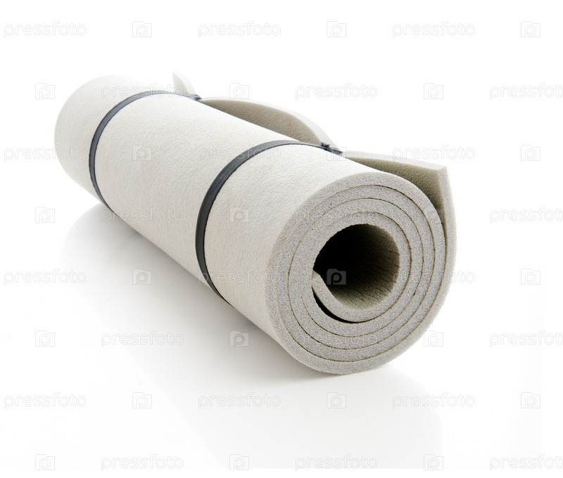 Свернутый коврик для сна на белом фоне