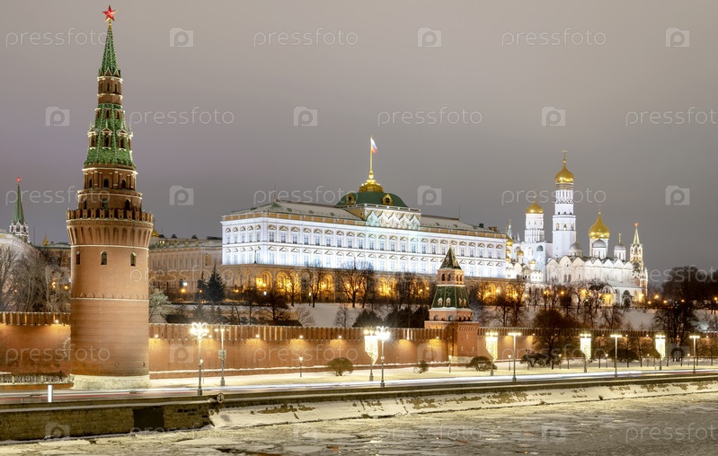 Москва, Россия 8 января 2022 г.: Московский Кремль освещен зимним вечером в