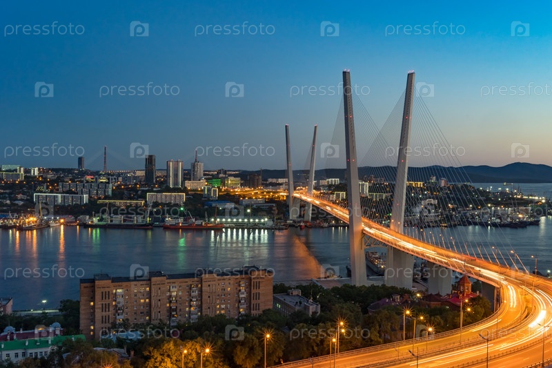 Владивосток, Россия. городской пейзаж с видом на Золотой мост