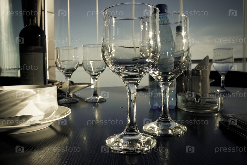 Накрытый стол со стеклянными стаканами