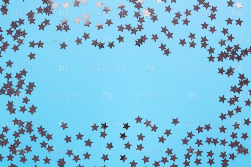 Рамка из конфетти в виде звездочек на голубом фоне