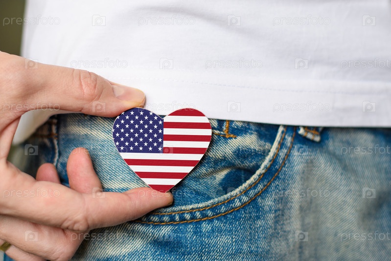 Патриот США! Деревянный значок с флагом США в форме сердца в мужской руке