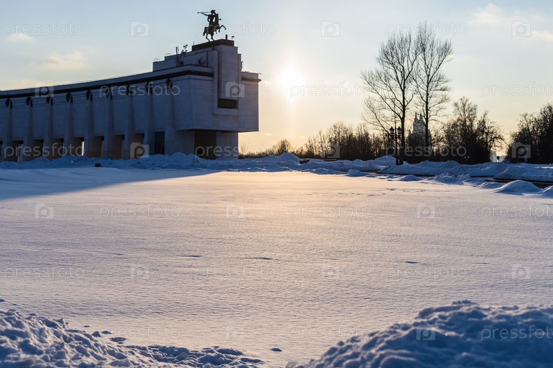 Сугробы и глубокий снежный покров на Поклонной горе