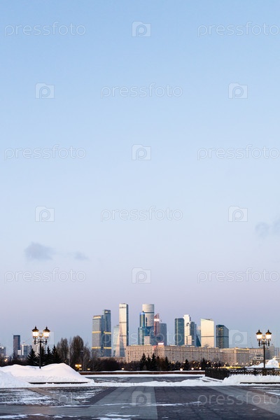 Вид на Москву с Поклонной горы в сумерках