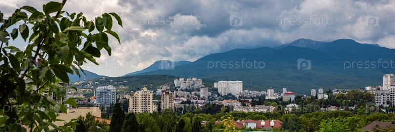 Панорама Алушты с видом на гору Роман Кош