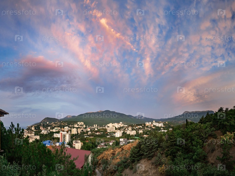 Панорама Алушты с видом на гору Роман Кош