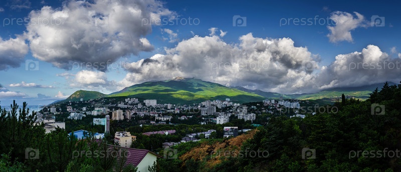 Панорама Алушты с видом на гору Роман Кош
