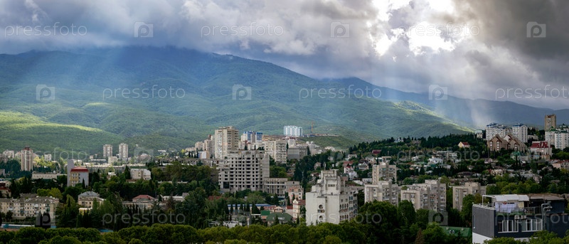 Панорама Алушты с видом на гору Роман Кош