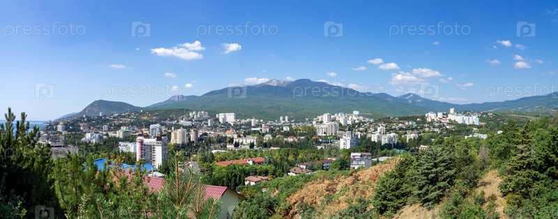 Панорама Алушты с видом на гору Роман Кош