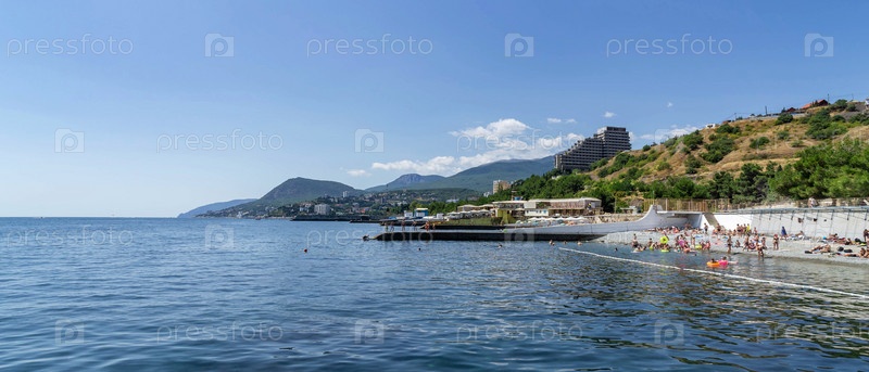 Вид на побережье Алушты с восточных пляжей в ясный день