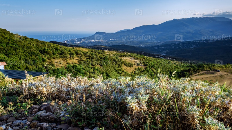 Вид на долину Алушты со склона горы Демерджи в ясный день
