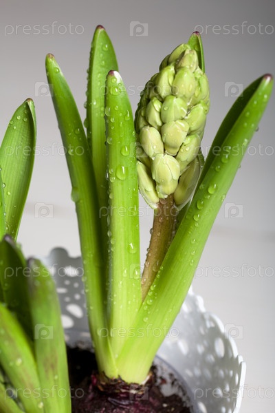 Гиацинты готовы к пересадке. В пластиковых контейнерах. Примулы готовы к выгонке. Крупный план