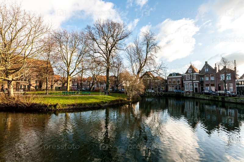 Улица возле озера в маленьком городке Хорн, Нидерланды