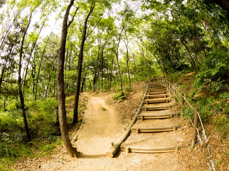 Тропинка через таинственный лес. Изображение рыбьего глаза