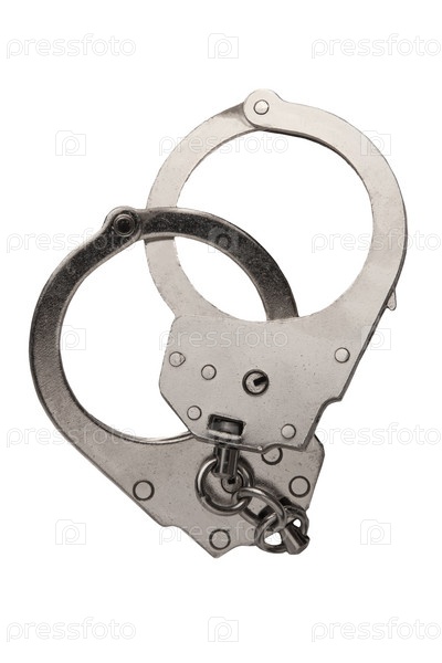 Блокированные наручники, изолированные на белом фоне. Вид сверху