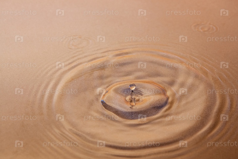Круги на воде и застывшая капля на поверхности. Фото в коричневых тонах