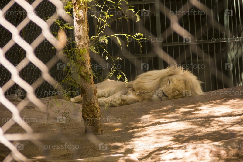 Крупный план красивого белого льва в зоопарке. Животные в неволе
