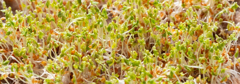 Молодняк семян кресс-салата микрозелень. Микрозелень крупным планом. Баннер. Концепция здоровой и вегетарианской пищи