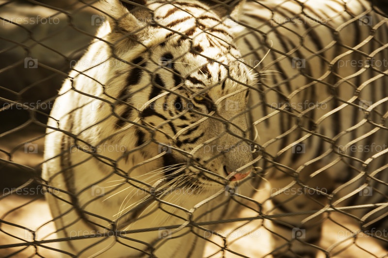 Крупный план красивого белого бенгальского тигра в зоопарке. Животные в неволе