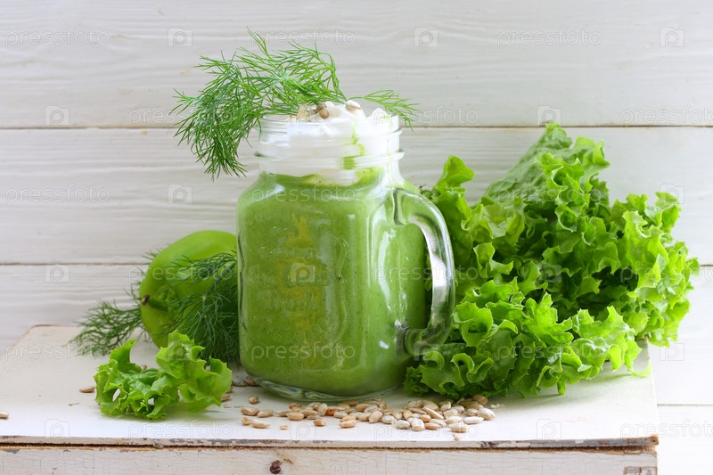 Смузи с зеленью на белом фоне