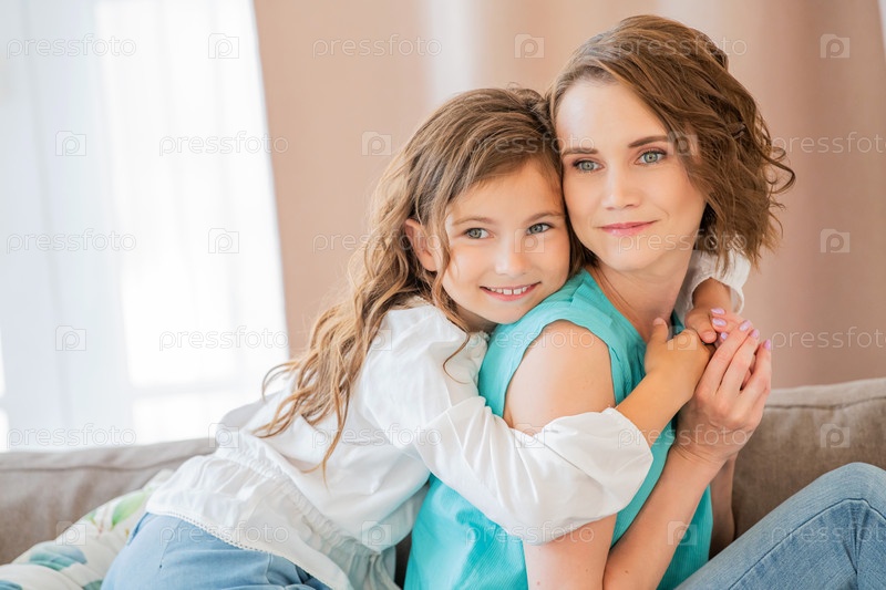 Счастливая мать и дочь-подросток обнимаются дома