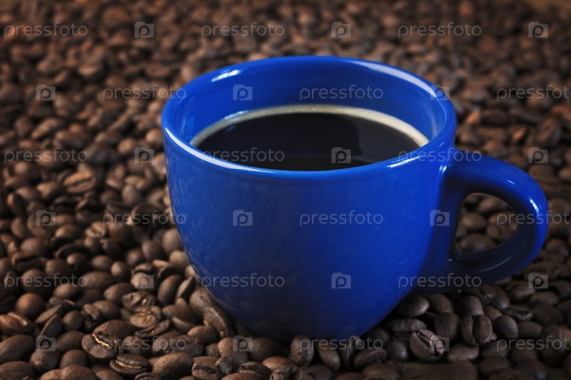 Чашка свежего кофе. Фон жареных кофейных зерен. Органический кофе